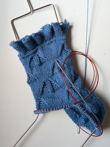 The next lap started June 23rd. I knew I'd never get these done this month, but was just going to plug along with another fun and challenging pattern. I really was wondering if I would finish in time. These are called A Sailor's Wife Socks and were designed by Laura Fahlin. They are now available for purchase on Ravelry. I used Garnstudio DROPS Fabel yarn in 103 Gray Blue.