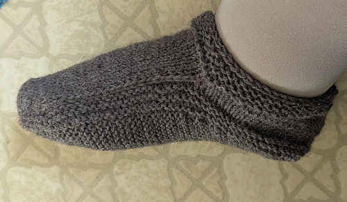 I did another preview knit for Claire Slade of Verily Knits. These are called Waterway Slippers and are available for purchase in her store on Ravelry. They are brilliantly knitted in one piece and no seams to sew. It is a nice pattern, but for some reason I had to start it over 3 times. First was because of a cat that decided that she liked the smell of the wool, so she chewed it up. The second time, I put the toe in the wrong place (I still don't know how I did that) and the third time - I finally got it! None of which was the pattern's fault. It was all on me! The photo angle sure made me have cankles in the photo. I will have to pay attention to angles when taking photos. Finished October 31, 2025.